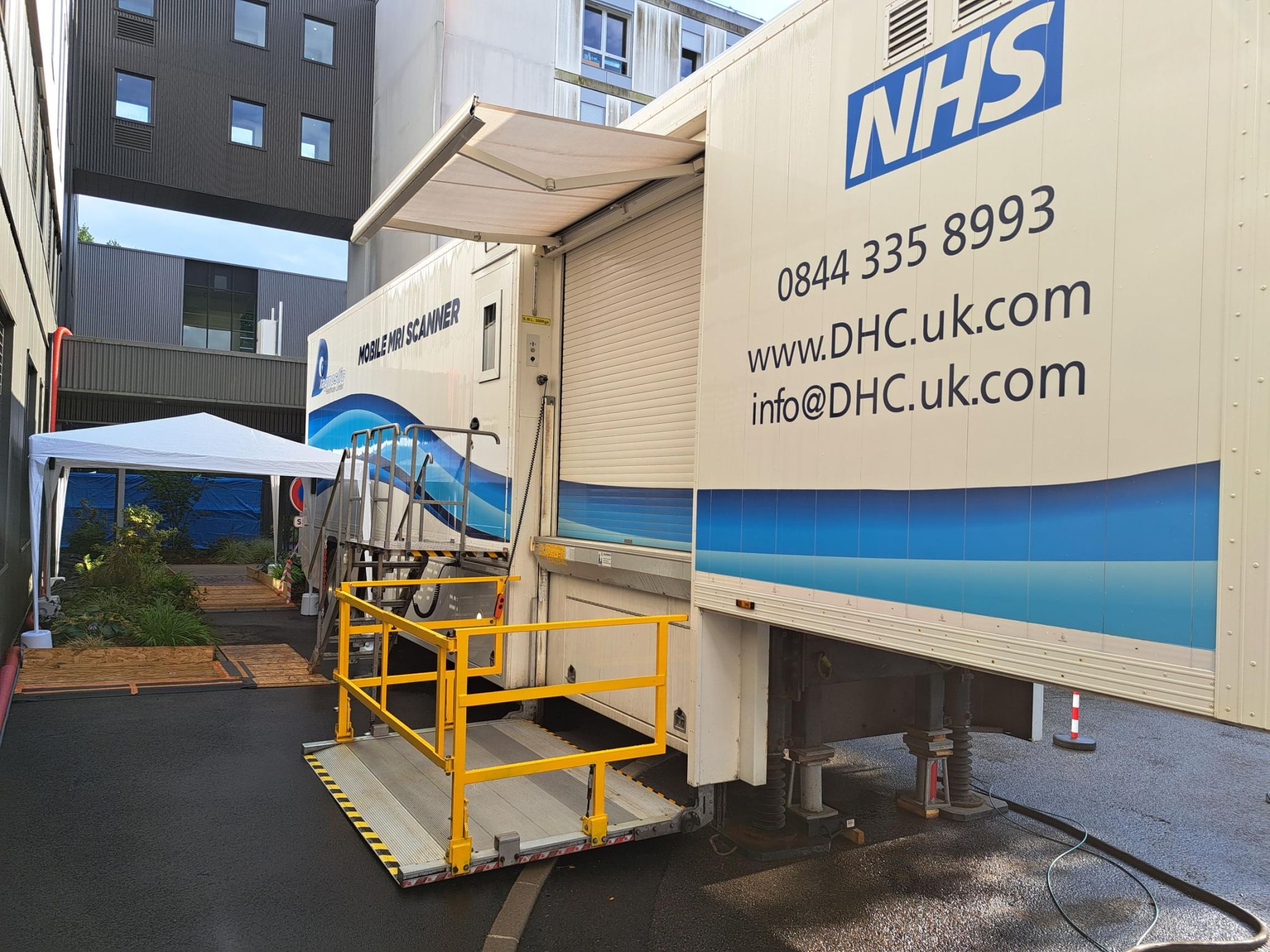 Pendant cette période de transition, nous avons mis en place une **IRM mobile**, louée auprès de nos partenaires **GE Healthcare** et **Medispace**, afin de maintenir l’ensemble de notre activité. Cette solution temporaire nous permet de continuer à accueillir :