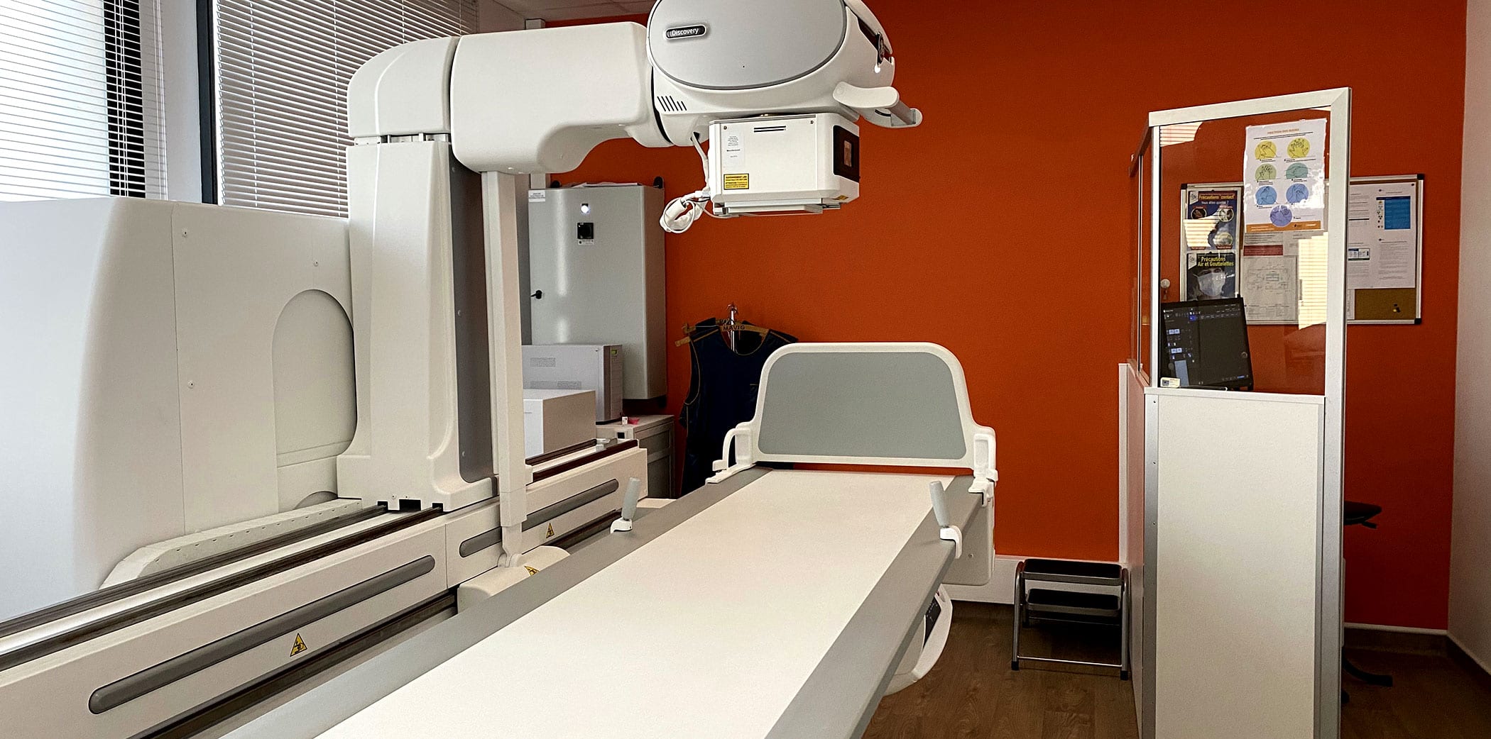Pendant l’examen, vous êtes installé(e) sur l’appareil de radiographie qui se compose d’un bras articulé muni d’un tube à rayons X et d’une plaque contenant le film. Vous serez soit en position debout, assise ou allongée selon les cas et la zone à radiographier.